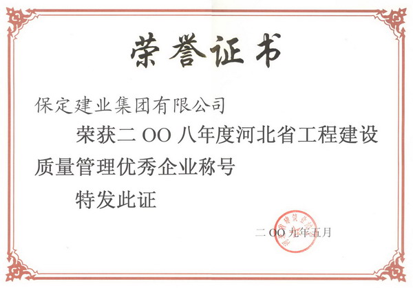 08年度省工程質量管理優(yōu)秀企業(yè)