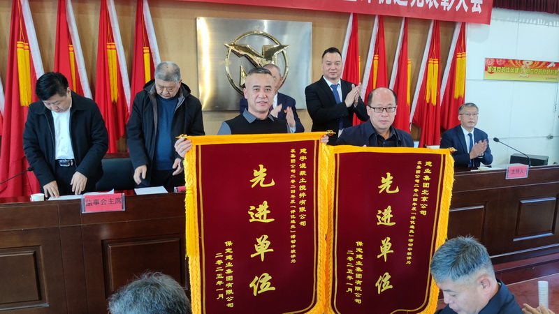 集團(tuán)領(lǐng)導(dǎo)向獲獎先進(jìn)單位、先進(jìn)個人頒發(fā)錦旗和證書。