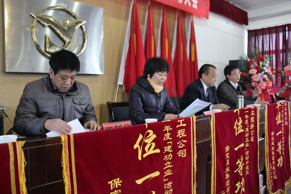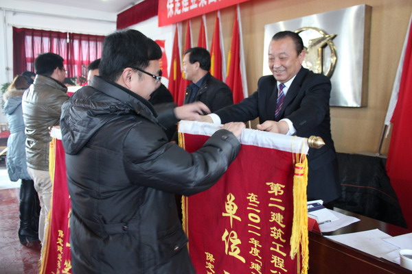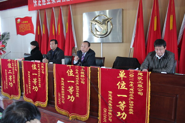 在隨后舉行的二零一一年度集團表彰大會上,由黨委副書記閆雙彥宣讀了“二零一一年度建功立業(yè)表彰決定”,并由集團公司領(lǐng)導對獲獎單位頒發(fā)了錦旗和獎狀。
