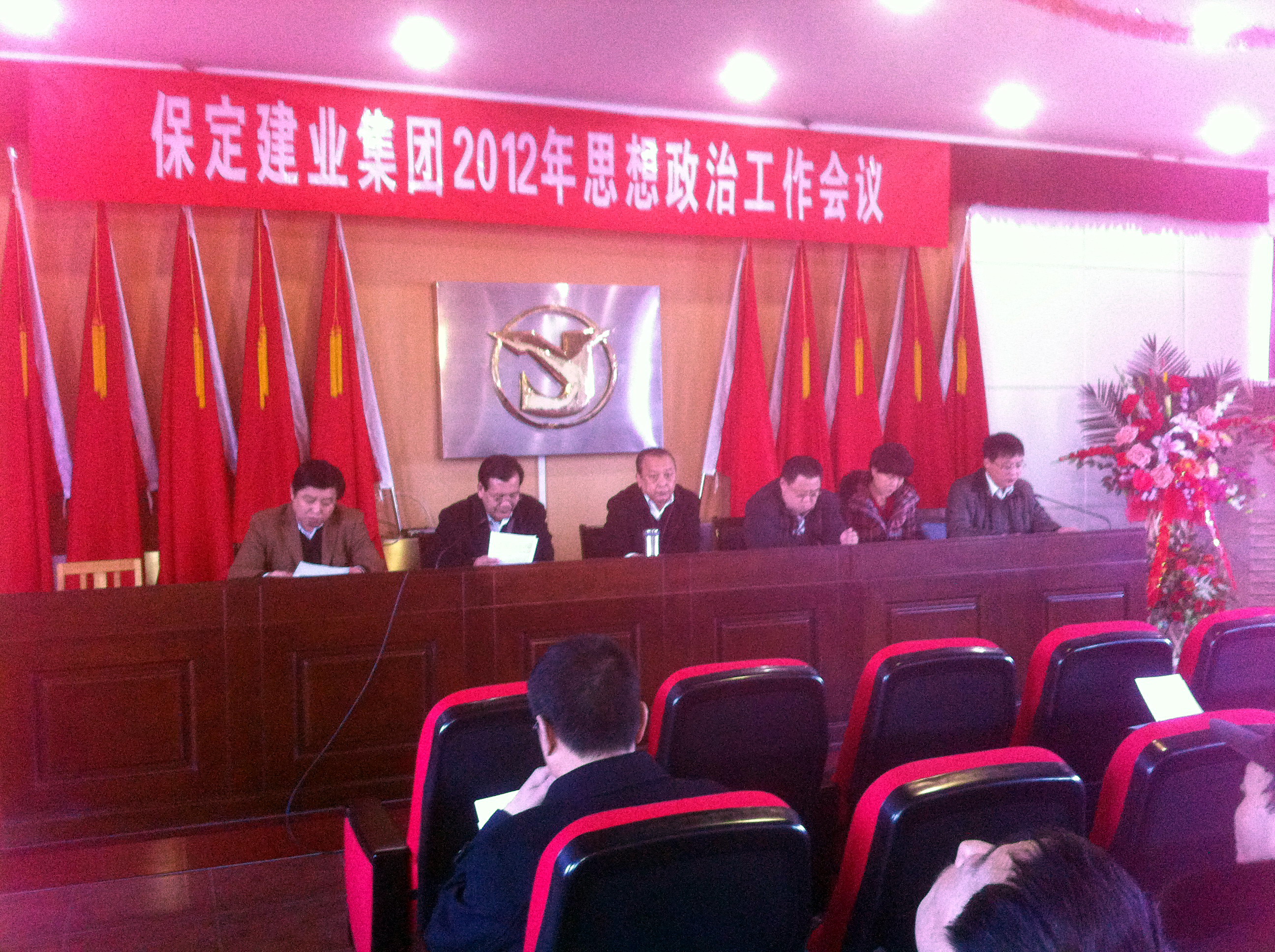2012年3月14日,保定建業(yè)集團(tuán)有限公司2012年思想政治工作會(huì)議在莊嚴(yán)的國歌聲中拉開了序幕,會(huì)議由黨委辦公室主任馬亞軍主持,集團(tuán)各公司黨、政、工、團(tuán)、婦、武裝、保衛(wèi)負(fù)責(zé)人參加會(huì)議。
