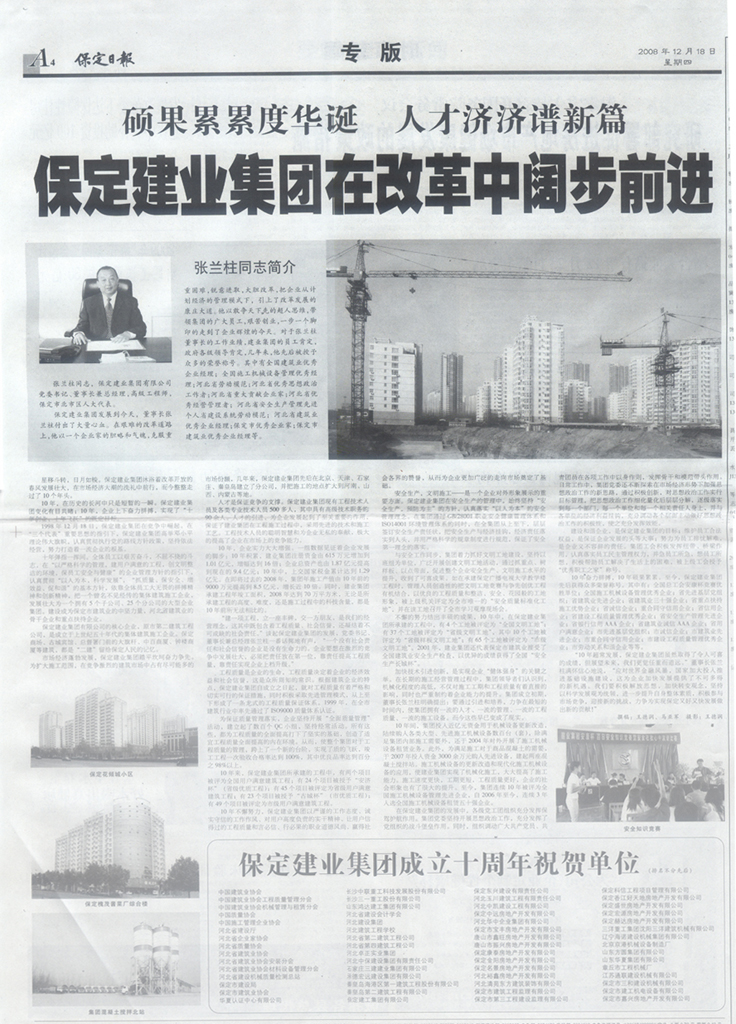 保定日報專版報道集團公司成立十五周年